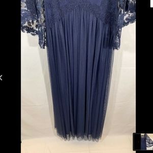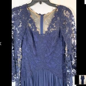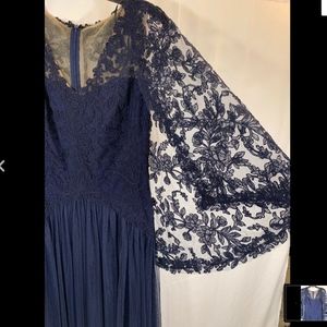 NEW $568 Tadashi Shoji Cove Tulle Cape Gown in Navy Blue [SZ 4 ]