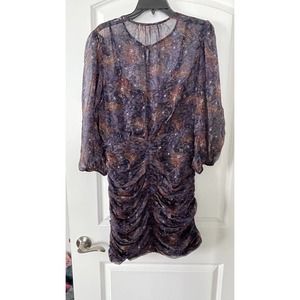 NEW $595 VERONICA BEARD "Kerri" Floral Paisley Silk Chiffon Ruched Mini Dress 10