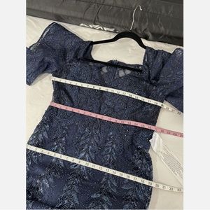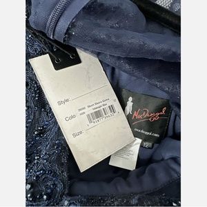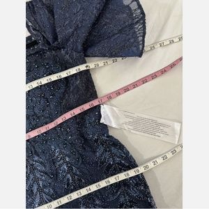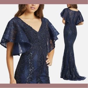 NEW $598 MAC DUGGAL [ 12 ] Sequined Lace V-neck Angel Sleeve Gown Blue Navy