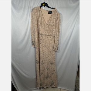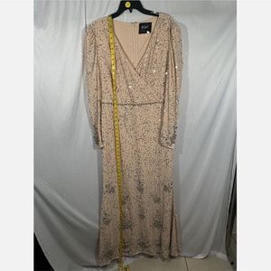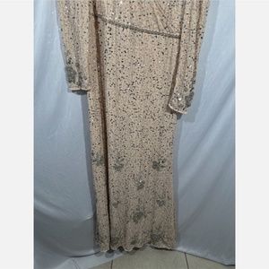 NEW $598 Mac Duggal [ 12 ] Sequin Floral Embellished Long Sleeve Gown Nude G1273