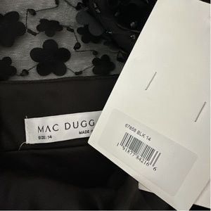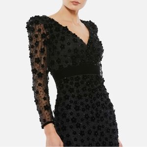 NEW $598 Mac Duggal [ 14 ] Embellished V Neck Illusion Column Midi Dress Black