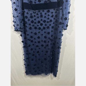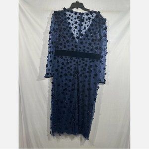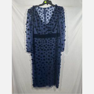 NEW $598 Mac Duggal [ 16 ] Embellished V Neck Illusion Column Midi Dress Blue