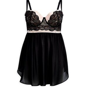 Elevate your lingerie game with this stunning black and nude contrast lace babydoll from Torrid. The underwired design provides support and shape, while the hook and eye closure ensures a comfortable fit. Made from a blend of polyester and other fabrics, this machine-washable babydoll is both durable and easy to care for. Featuring a solid pattern and in size 5, this plus-size babydoll is perfect for women who want to feel confident and sexy. The vintage-inspired design is brought up to date with a modern twist, making it suitable for any occasion. Add this beautiful piece to your intimates collection today.