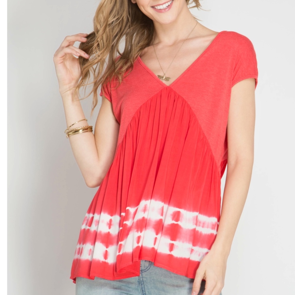 Short sleeve top tie-dye and t-bach detail runs slightly large.