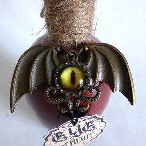 New, never displayed, ceramic, cork topped, apothecary bottle prop by Cradle to Grave Curiosities. This is an actual working bottle. Features a hang tag with a metal pendant of a one eyed winged monster around the bottle neck. This was acquired from an Oddities convention. A talented artisan was selling their spectacular creations in their booth. This item has never been displayed. Perfect for Halloween decor or everyday. (See photos for details) I am the original owner. It has been in climate controlled storage since purchased.