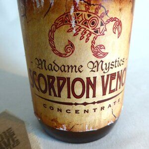 New, never displayed, “Madame Mystics Scorpion Venom Concentrate” apothecary glass bottle / jar. Comes with an actual scorpion incased in resin embedded in the wax. The bottle is filled with some type of creepy substance that is sealed with wax. Comes with original tag. Created by “Cradle to Grave Curiosities. This was acquired from an Oddities convention. A talented artisan was selling their spectacular creations in their booth. Perfect for Halloween decor or everyday. It is right out of a Harry Potter film set! This item has never been displayed.(See photos for details) I am the original owner. It has been in climate controlled storage. Comes from a pet and smoke free home.