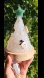 A fun Christmas tree that is made out of moonstone chips and a green aventurine star topper. The moonstone has flashes. The light automatically changes.