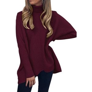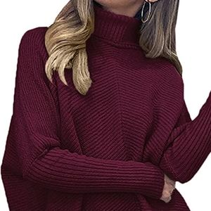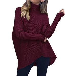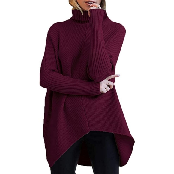 Design:Turtle cowl neck,long batwing sleeve,high low asymmetric hem,solid color,tunic top sweater,knitwear casual style,oversized sweater.