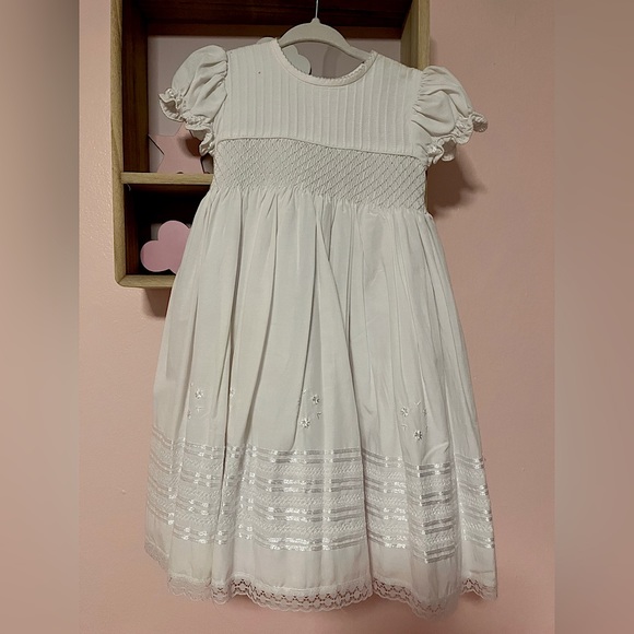 Beautiful white dress perfect for baptism , weddings , birthdays. Super cute . NWOT SIZE 18 can fit up to 24 mo