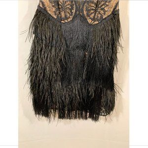NEW $648 Tadashi Shoji‎ Aubrie Mini Fringe Lace Great Gatsby Dress [ SZ 2 ]