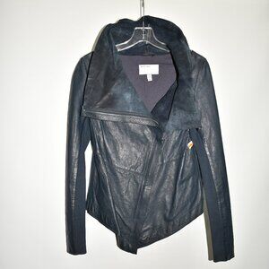 NEW $650 MUUBAA DRAP LAMB LEATHER JACKET ASYMMETRICAL PETROL BLUE SIZE 8 RARE!!