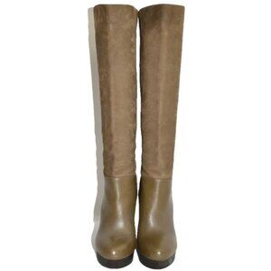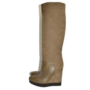 NEW $650 Vince Vivian Leather & Nubuck Wedge Tall Knee Boot OLIVE BROWN 7 (MG27)