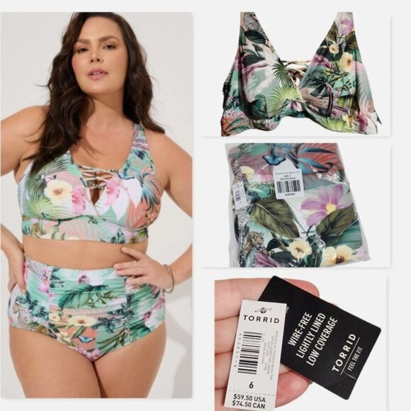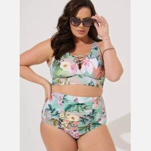 NEW 6X TORRID SWIM SET Wireless Xo Bikini Top & High Rise Ruched Bottom Tropical
