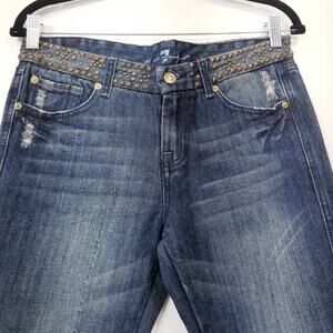 NEW 7 For All Mankind Jeans Studded "A" Pocket" Bootcut Blue Denim