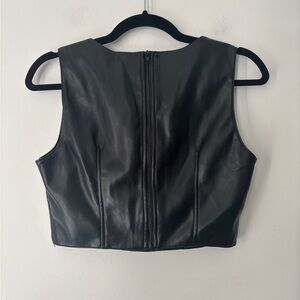NEW 7 For All Mankind Womens Faux Leather Sleeveless Crop Top Black Size Small