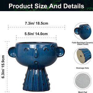 Cool Gift: Its unique face design makes this cute face pots for plants for plant lovers, friends, girlfriends, moms, family, teachers, and kids - ideal with blue plant pot for birthdays, Teacher's Day, Christmas, Thanksgiving, or any occasion