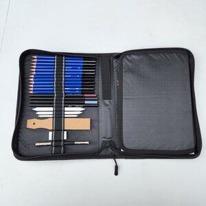 Includes: 12 Graphite Sketching Pencils, 12 Oil Based Colored Pencils, 12 Watercolor Pencils, 12 Metallic Colored Pencils, 12 Black Charcoal Pencils, 4 Pastel Pencils, 1 White Charcoal Pencil, 3 Blending Stumps, 1 Metal Sharpener, 1 Vinyl Eraser, 1 Sandpaper Block, 1 Artist brush, 1 Pencil Extender, 1 Portable Travel Case