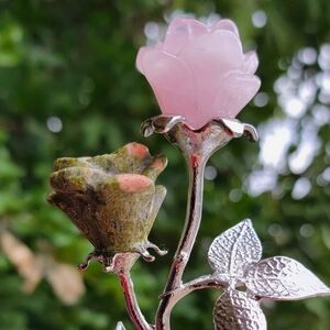 NEW 7.5" ROSE QUARTZ AND UNAKITE DOUBLE ROSES