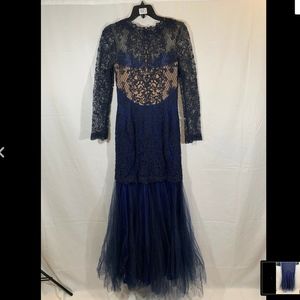 NEW $770 Tadashi Shoji Corded Lace & Tulle Gown Blue/Black [SZ 4 ]