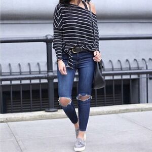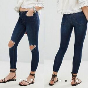 NWT NEW $78 Free People High Rise Busted Knee Rip Skinny Jean
