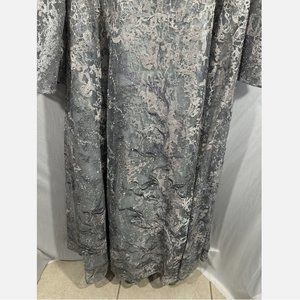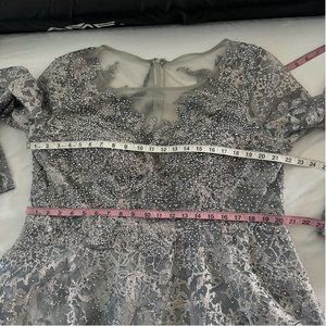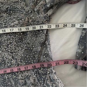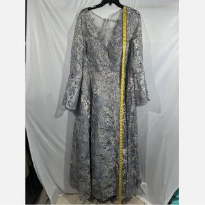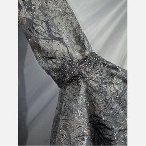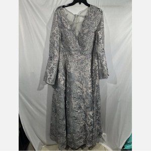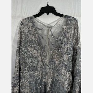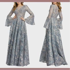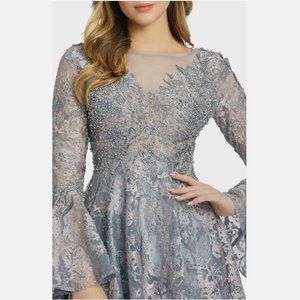 NEW $798 Mac Duggal [ 18 ] Embellished Illusion Bell Sleeve A-Line Gown‎ Grey