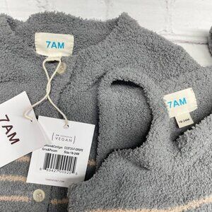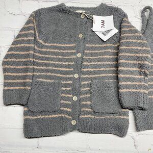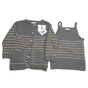 NEW 7AM Enfant Camisole + Cardigan Toddler 18-24 mos Gris & Pecan Striped Button