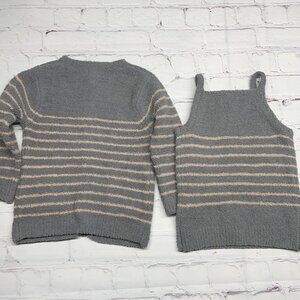 7AM Enfant Camisole + Cardigan Set Toddler 18-24 mos Gris & Pecan Striped Button Up