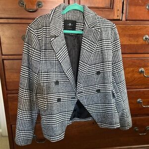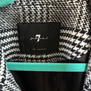 7 For All Mankind wool blend double breasted jacket. New without tags, never worn. Fits like a Medium/Large. Measurements: 21" pit to pit, 25" length. 24.5" sleeve from shoulder seam. Back vent still stitched close. 2 front flap pockets. Exterior button close and interior button close. Not itchy, fully lined. See material tag. No shoulder pads. Black and white herringbone plaid. No stains, no flaws. Non smoking no pet home.