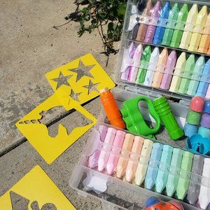 Includes 37 bright colors, a durable plastic case, 4 chalk tools, 5 stencils, and a chalk sharpener