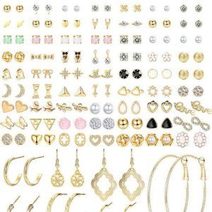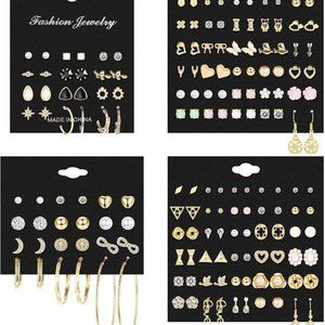 NEW 84 Pairs Assorted Multiple Stud Earrings Hoop Set Dangle Cute Hypoal…