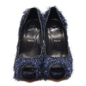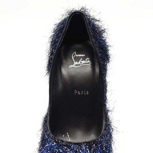 NEW $850 Christian Louboutin Very Prive 120 Peep Toe Blue Glitter Metallic Threa