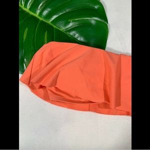 A fluttering overlay adds romantic movement to a vibrant strapless bikini top that's perfect for your next vacation - Slips on over head - Ruffle popover detail - Strapless - Lined - Made in the USA