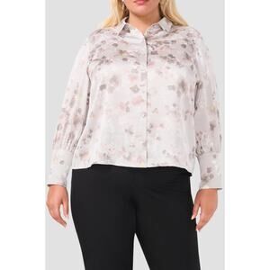 NEW $89 Halogen Satin Button-Up Shirt Floral SZ M