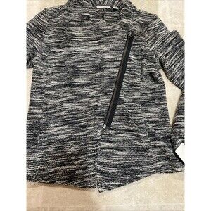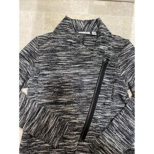 NEW $89 Halogen Womens XS Zip Up jacket Black Ivory Tweed Asymmetrical