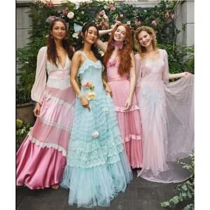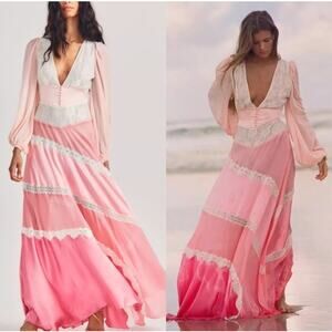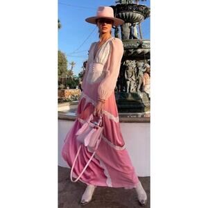 NEW $895 LoveShackFancy Pink Colorblock Kinsler Satin Lace Maxi Dress Sz 4 small Gown