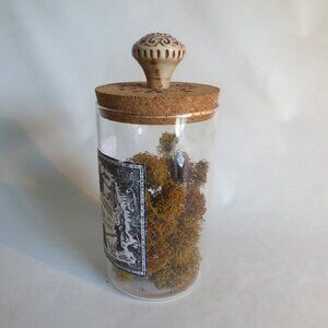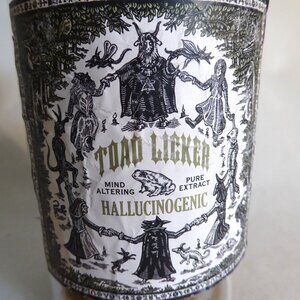 New, never displayed, “Toad Licker, Hallucinogenic, Mind Altering, Pure Extract” apothecary glass bottle / jar prop. The bottle is filled with some type of creepy natural dried plant / moss. Comes with original tag. Created by “Cradle to Grave Curiosities. This was acquired from an Oddities convention. A talented artisan was selling their spectacular creations in their booth. Perfect for Halloween decor or everyday. It is right out of a Harry Potter film set! This item has never been displayed.(See photos for details) I am the original owner. It has been in climate controlled storage. Comes from a pet and smoke free home.
