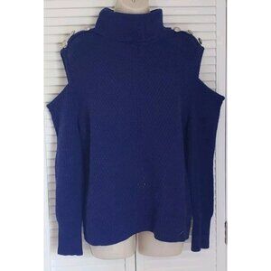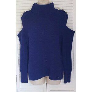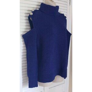NEW $90 I.N.C. WOMEN'S TURTLENECK COLD-SHOULDER SWEATER MEDIUM SAPPHIRE CRUSH