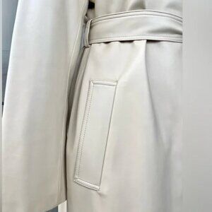 NEW! $90 ZARA Vegan Leather TRENCH COAT Midi Length Ivory Size XL 16 18 Lined
