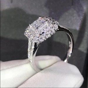 NEW 925 STERLING SILVER DIAMOND HALO RING