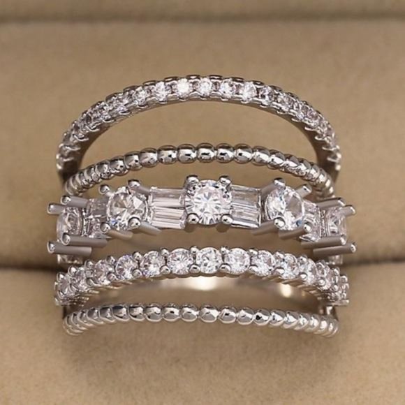 NEW 925 STERLING SILVER DIAMOND MULTI BAND RING