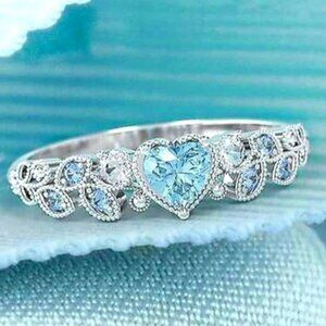 💥NEW 925 STERLING SILVER HEART SHAPE DIAMOND ETERNITY RING, L081