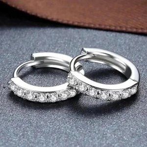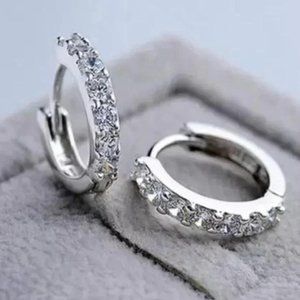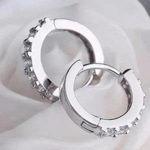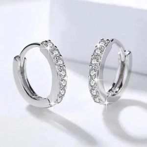 NEW 925 STERLING SILVER HOOP DIAMOND EARRINGS, BEAUTIFUL EARRINGS, CUTE EARRINGS