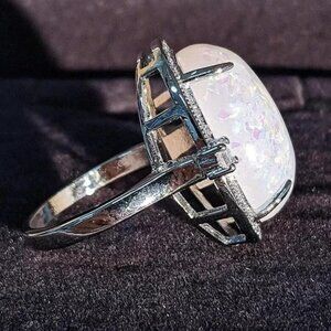 NEW 925 STERLING SILVER OPAL DIAMOND RING, CUTE RING, SHINY RING.