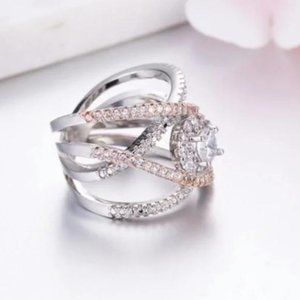 NEW 925 STERLING SILVER ROSE GOLD DIAMOND RING
