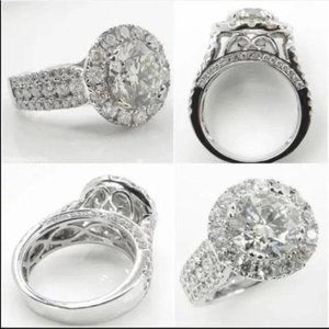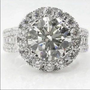 NEW 925 STERLING SILVER ROUND DIAMOND HALO RING, BEAUTIFUL RING, SHINY RING.