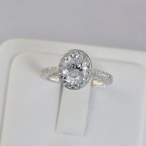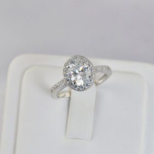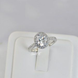 NEW 925 STERLING SILVER WOMENS HALO OVAL WEDDING ENGAGEMENT RING