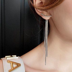 NEW 925 Silver Arc Bar Tassel Drop Earrings