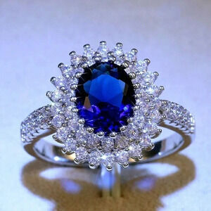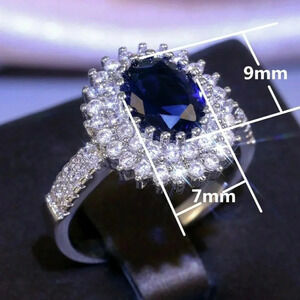 NEW 925 Silver Diamond Oval Sapphire Halo Ring