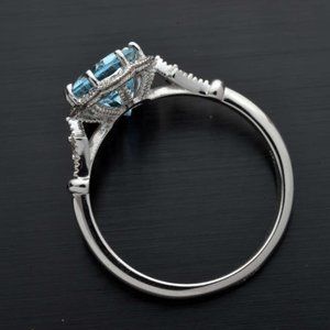 NEW 925 Sterling Silver Aquamarine Diamond Ring