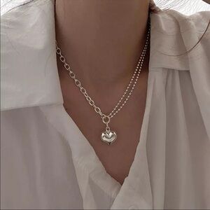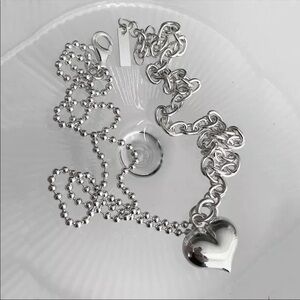 💎NEW 925 Sterling Silver Asymmetrical Chain Heart Necklace